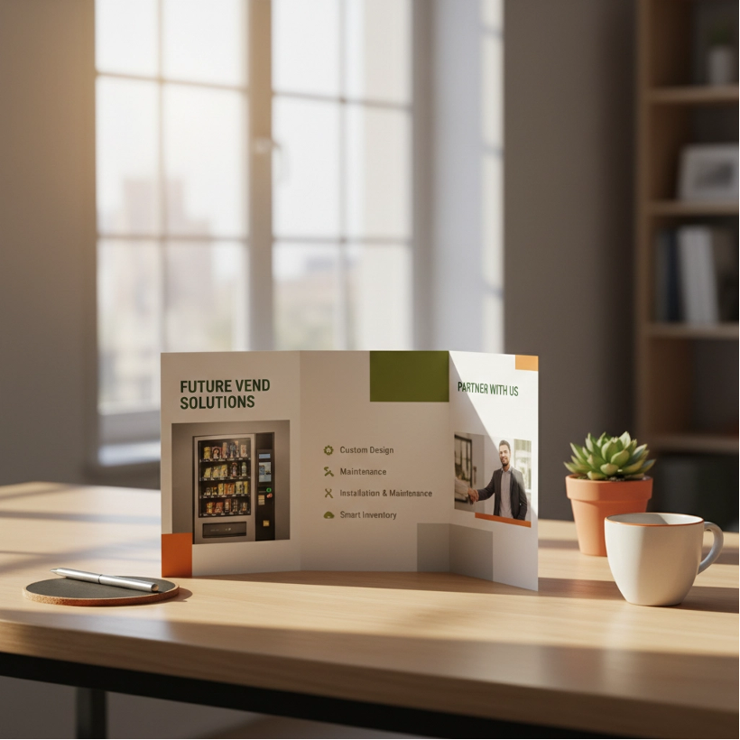 You don't need a Madison Avenue agency. A tri-fold brochure designed on Canva and printed at your local FedEx Office will run about $2-3 per copy for small quantities. Order 100 to start, that's a $200-300 investment that could land you locations worth thousands in monthly revenue.