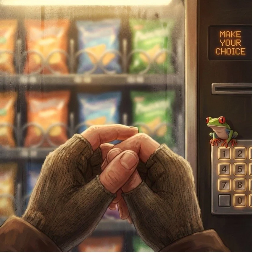 You know this customer. They approach your machine and their hands go straight to that universal gesture of anticipation: rubbing their fingers together while scanning the options. This is someone who's already mentally committed to buying something, they're just figuring out what. These are your golden customers, the ones who've already crossed the psychological purchasing bridge.